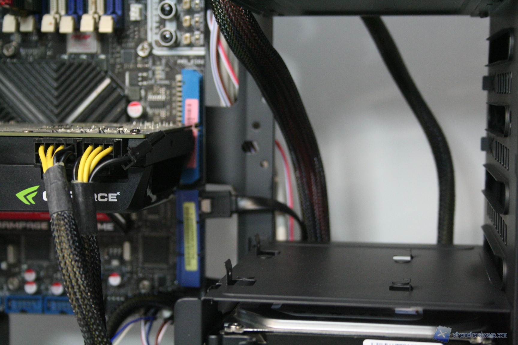 Diversamente dalle altre recensioni, verranno mostrate le fotografie anche con la prova di montaggio, assieme al telaio senza componenti. E'stata utilizzata una Asus Rampage II Extreme, avente il socket X58 Intel, mentre come dissipatore troviamo un Thermalright True Spirit 120 avente una altezza di 158mm.