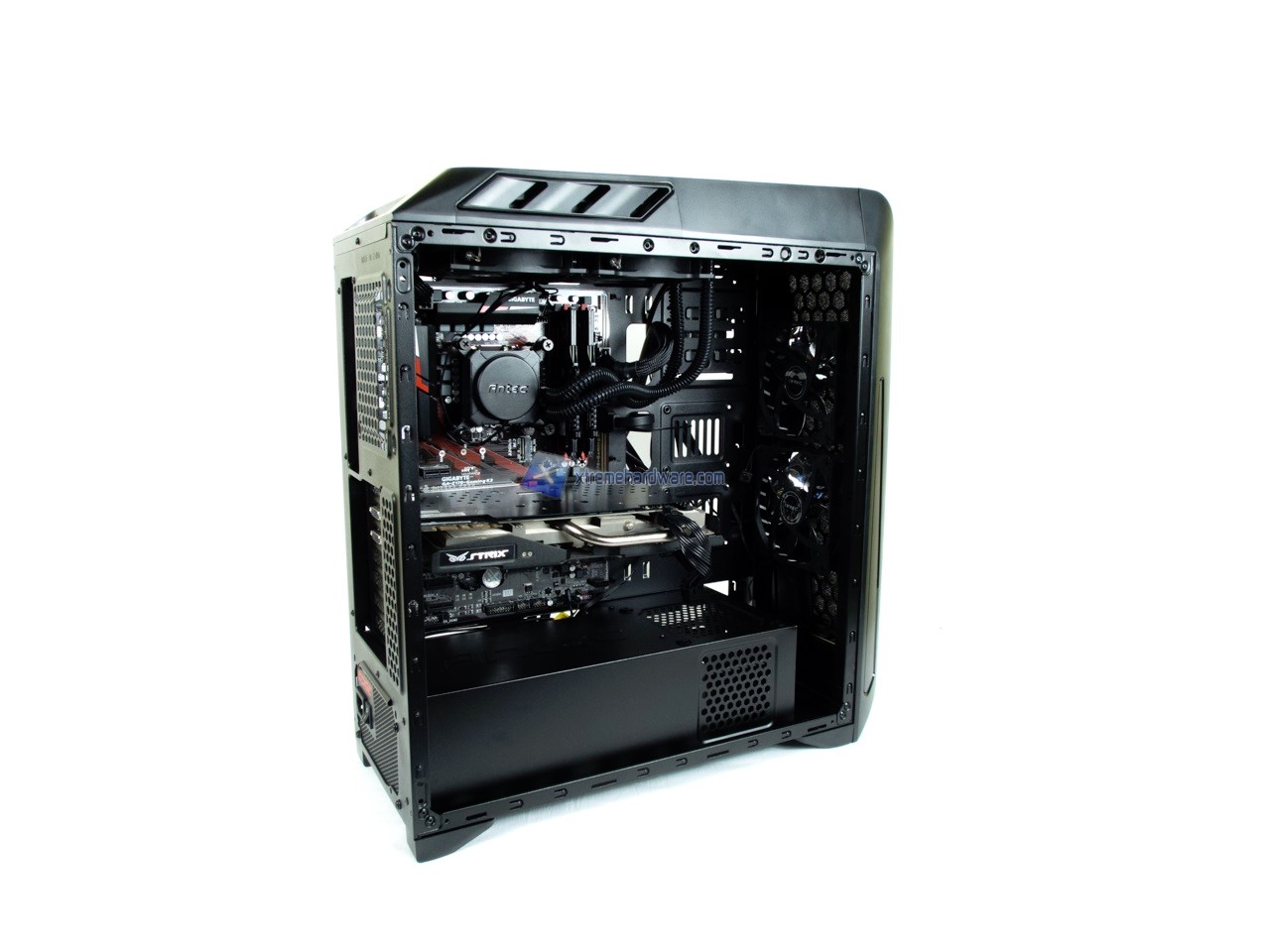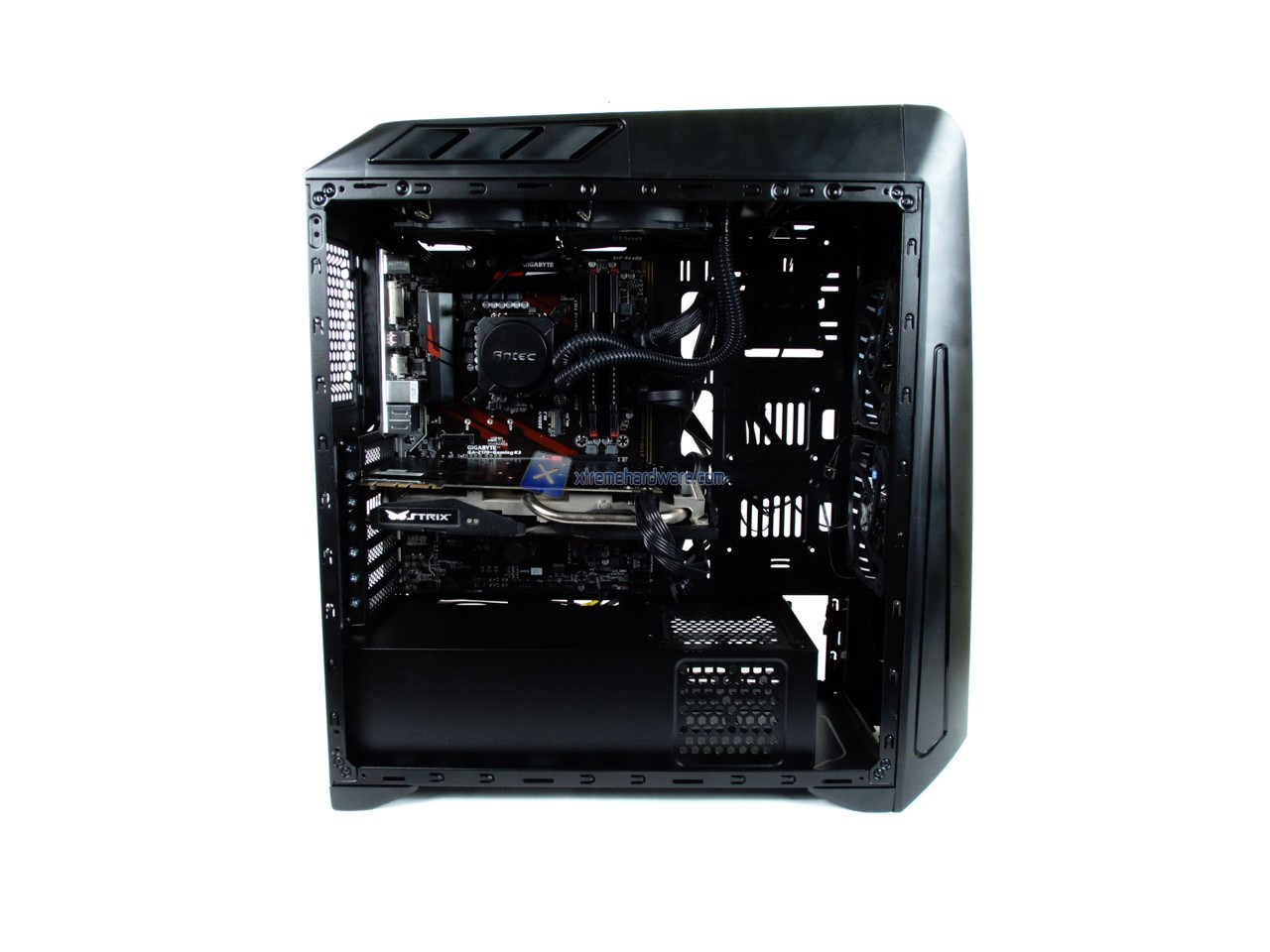 L’installazione nell’Antec GX1200 non ha richiesto molto tempo. Inizialmente qualche dubbio di spazio e cablaggio è sorto ma man mano che abbiamo installato i diversi componenti ci siamo resi conto che il tutto sarebbe andato al suo posto. Cosa che è avvenuta infatti.